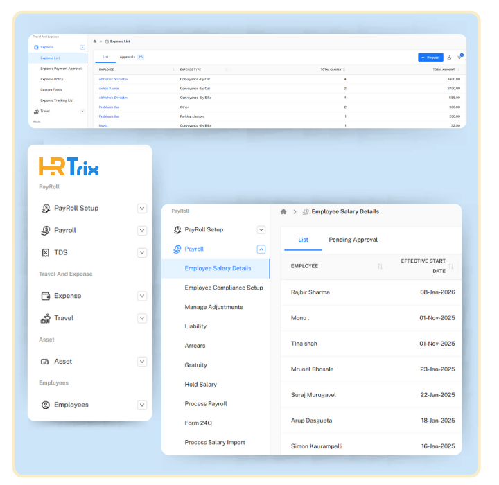 HRTRIX cloud based HRMS has a simplified Payroll & Expenses management system. It aligns with the required payroll policies to generate regular salaries for registered employees.