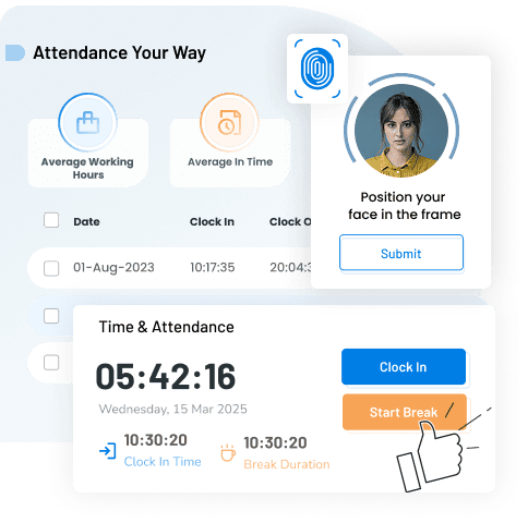 Track real-time employee attendance with reliable data from biometric and location-based systems.