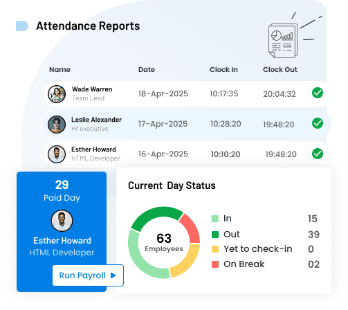 Get real-time insights into payroll data with detailed reports and complete administrative control.